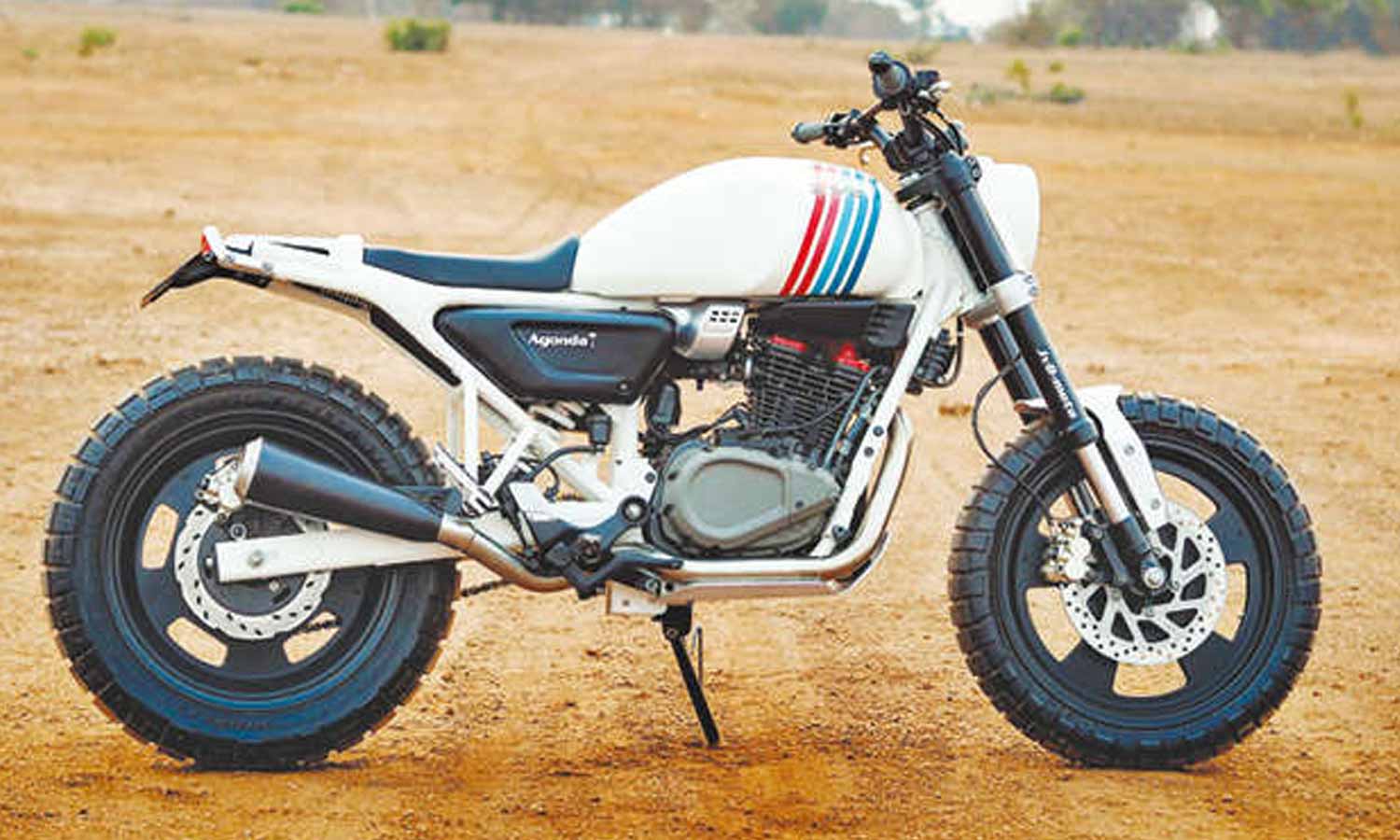 - இந்த மோட்டார்சைக்கிளில் தனித்துவமாக, பெட்ரோல் டேங்க், ஹெட்லைட் வெள்ளை நிறத்தில் இடம் பெற்றுள்ளது.
