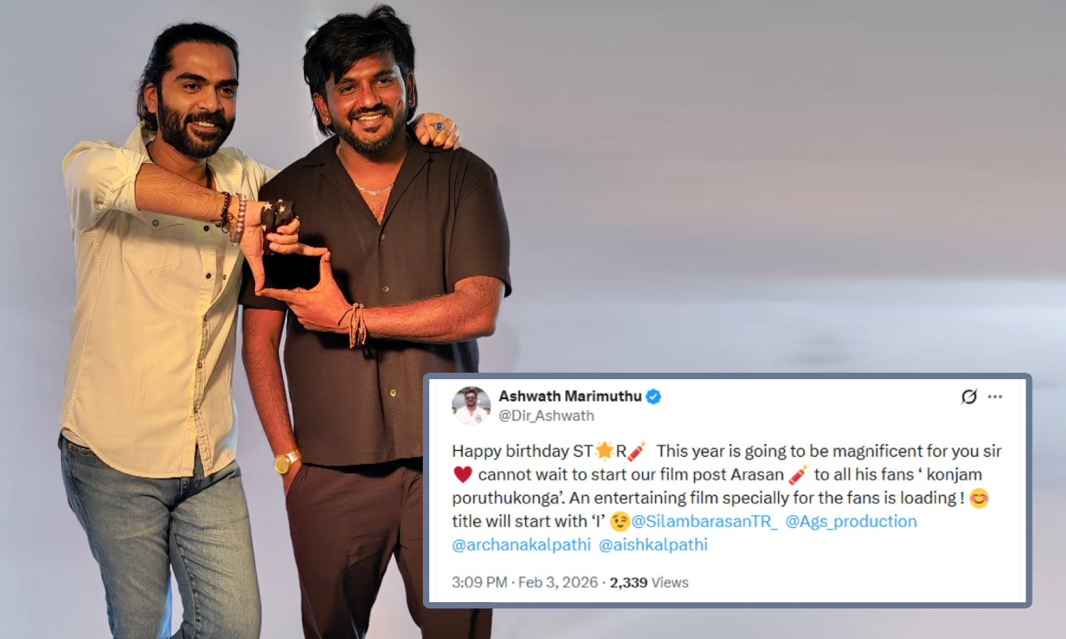 இந்த வரிசையில், `டிராகன்' படத்தை இயக்கிய அஸ்வத் மாரிமுத்து நடிகர் சிலம்பரசனுக்கு வாழ்த்து தெரிவித்துள்ளார். மேலும், அவரும், சிலம்பரசனும் இணையும் படத்தின் அப்டேட்டை பகிர்ந்துள்ளார். அதன்படி தானும், நடிகர் சிலம்பரசன் இணையும் படம் `அரசன்' படம் முடிந்ததும் தொடங்கும் என இயக்குநர் அஸ்வத் மாரிமுத்து தெரிவித்துள்ளார். மேலும், படத்தின் தலைப்பு `I' என்ற வார்த்தையில் தொடங்கும் என்றும் அவர் தெரிவித்தார்.