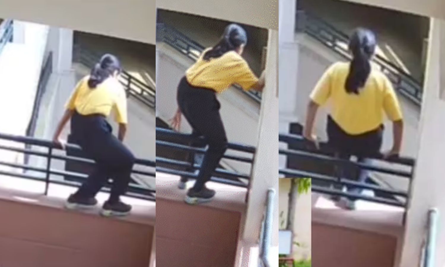 சிறுமி பள்ளியின் 4வது மாடிக்கு சென்று அங்கிருந்து கீழே குதித்த வீடியோ சமூக வலைதளத்தில் வெளியாகி அதிர்ச்சியை ஏற்படுத்தி வருகிறது. இந்த சம்பவம் தொடர்பாக போலீசார் தொடர்ந்து விசாரணை நடத்தி வருகின்றனர்.