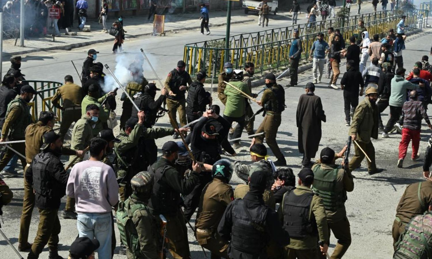 வன்முறையைக் கட்டுப்படுத்த தடியடி நடத்தப்பட்டது. மேலும் கூட்டத்தை கலைக்கக் கண்ணீர் புகைக் குண்டுகள் வீசப்பட்டன.