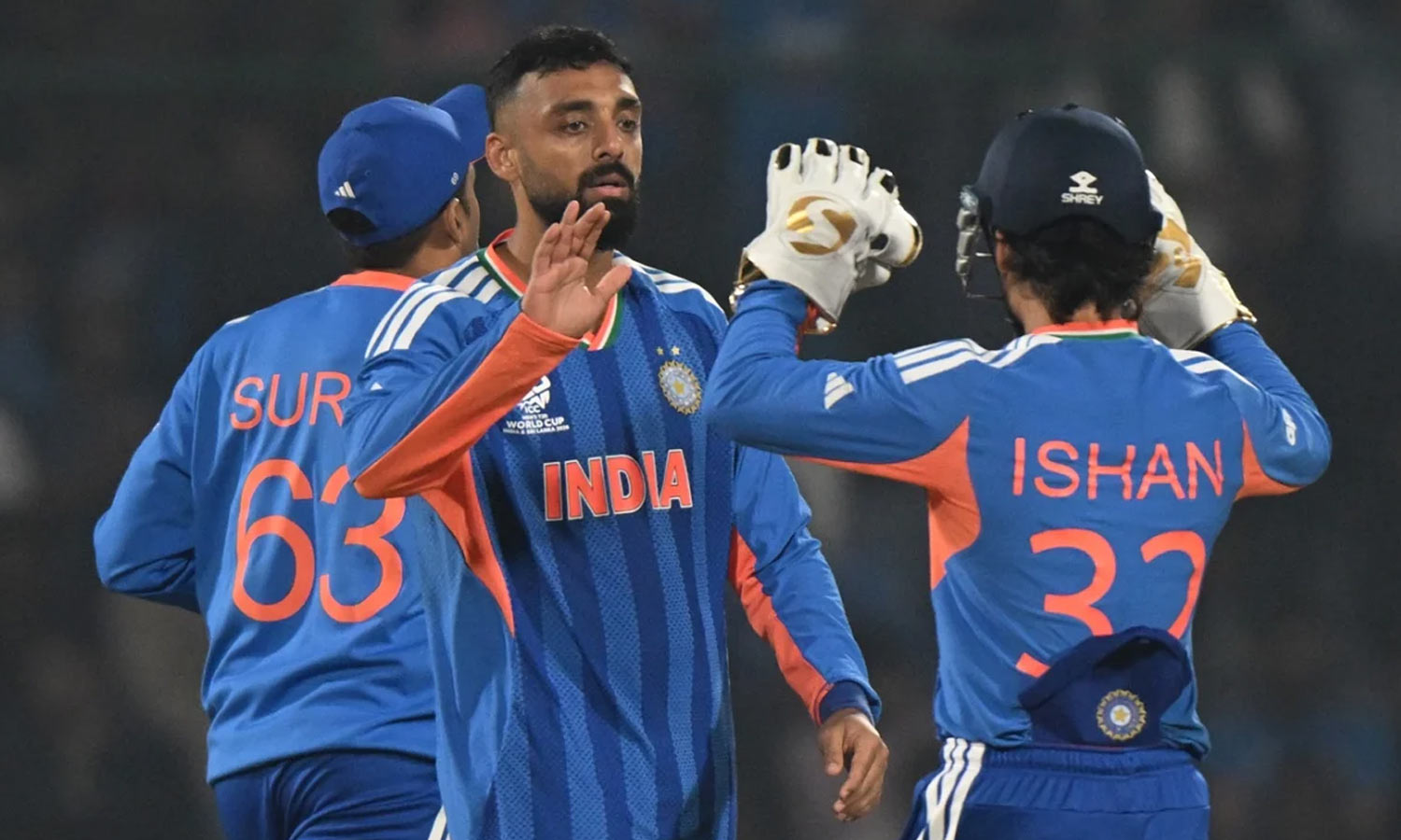 இந்தியா சார்பில் வருண் சக்கரவர்த்தி 3 விக்கெட்டும், பாண்ட்யா, அக்சர் படேல் தலா 2 விக்கெட்டும் வீழ்த்தினர்.