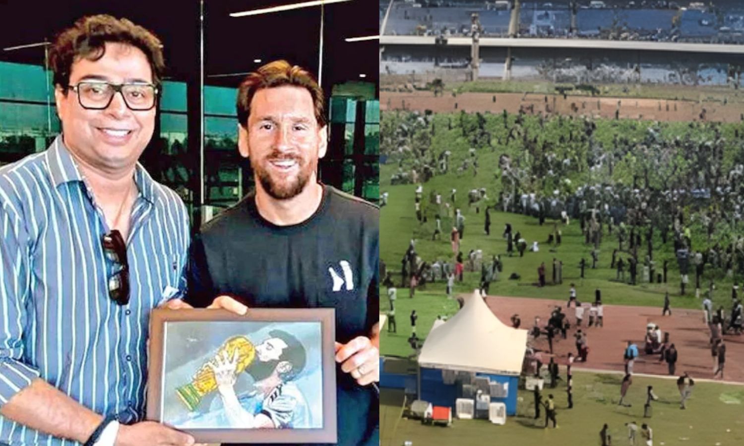 அர்ஜென்டினா அணியின் கேப்டனான பிரபல கால்பந்து வீரர் லயோனல் மெஸ்ஸி 14 ஆண்டுகளுக்கு பிறகு இந்தியாவுக்கு வந்துள்ளார். அவரை காண்பதற்காக ஆயிரக்கணக்கில் திரண்டிருந்த கால்பந்து ரசிகர்கள் மிகுந்த உற்சாகத்துடன் கோஷம் எழுப்பி மகிழ்ச்சி ஆரவாரம் எழுப்பினர்.