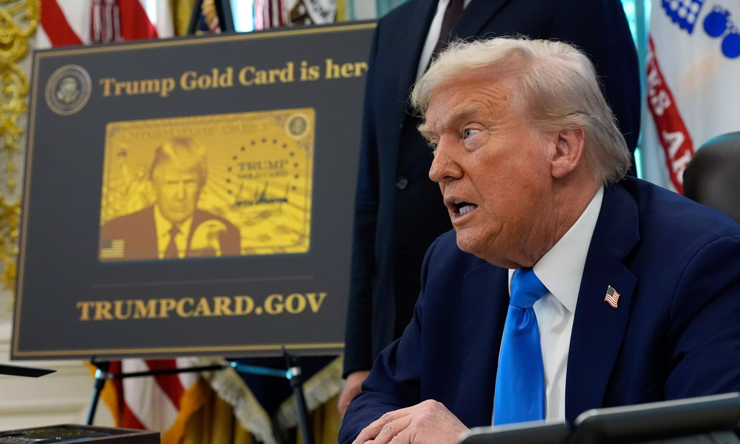 இந்தநிலையில் கோல்டு கார்டு விசா திட்டத்தை அதிபர் டிரம்ப் அதிகாரப்பூர்வமாக தொடங்கி வைத்தார். வெள்ளை மாளிகையில் நடந்த நிகழ்ச்சியில் கோல்டு கார்டு விற்பனையை டிரம்ப் அறிமுகப்படுத்தினார். இதன்மூலம் வெளிநாட்டினர் அமெரிக்க அரசிற்கு 1 மில்லியன் அமெரிக்க டாலர்களை (ரூ.8.98 கோடி) நன்கொடையாக வழங்குவதன் மூலம் நிரந்தரமாக தங்கும் அந்தஸ்தைப் பெறுவார்கள்.