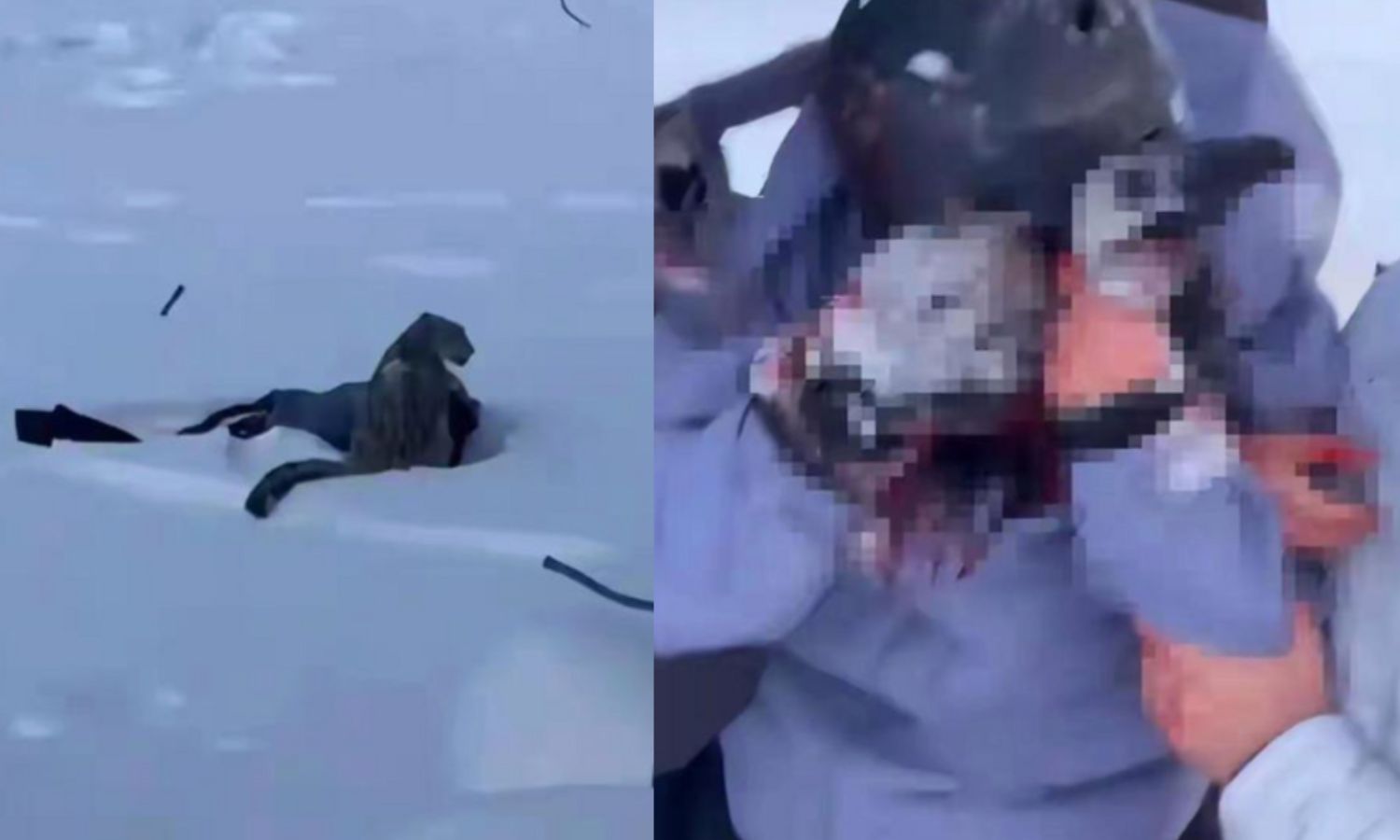 நண்பர்களுடன் பனிச்சறுக்கு விளையாடச் சென்ற ஒரு சுற்றுலாப் பயணி, திரும்பும் வழியில் சாலையோரம் ஒரு பனிச் சிறுத்தையைக் கண்டுள்ளார்.