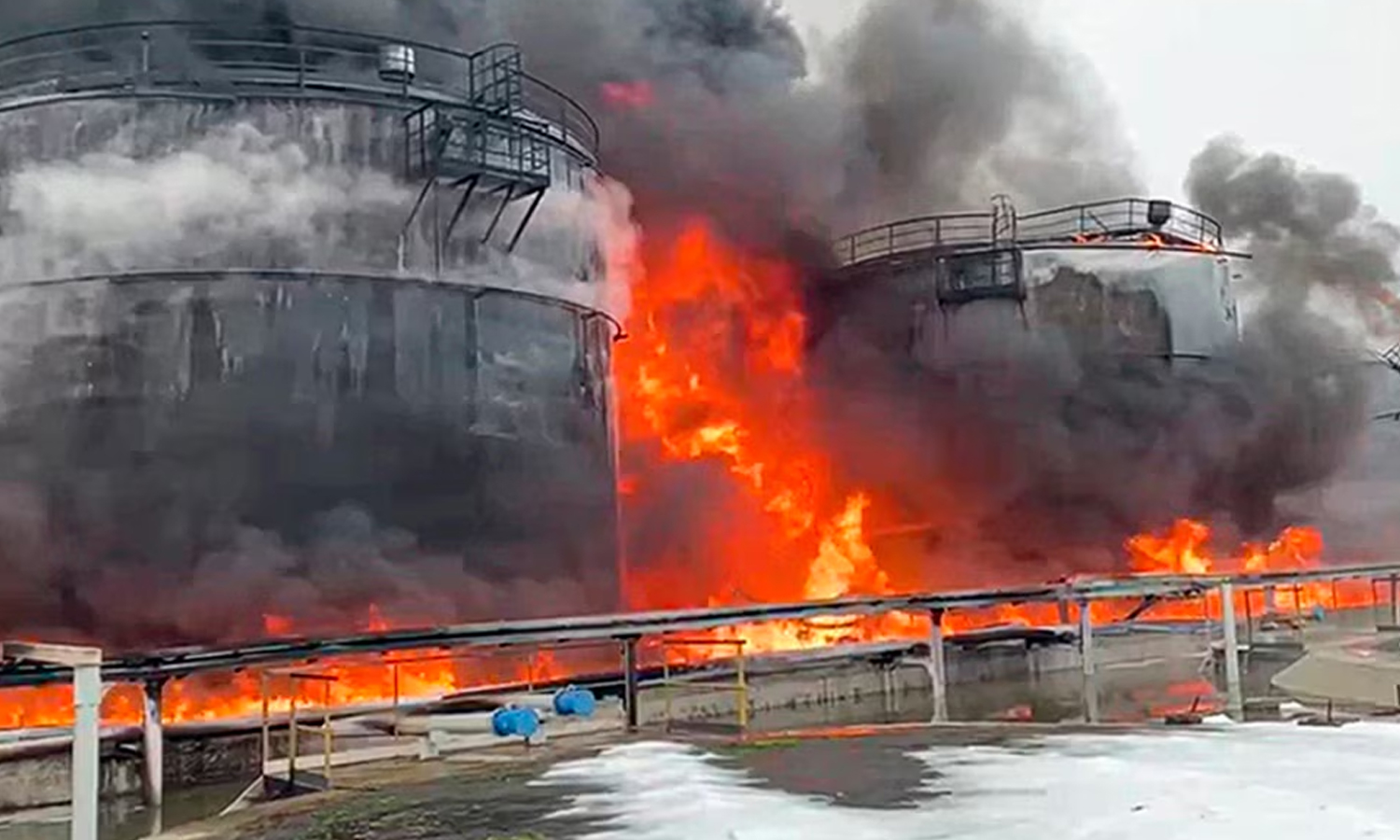 ரஷியாவின் கருங்கடல் துறைமுகமான துவாப்சை குறிவைத்து டிரோன் தாக்குதல் நடத்தப்பட்டது. அங்கிருந்த எண்ணை கப்பல் மீதும் தாக்குதல் நடத்தப்பட்டது. இதில் எண்ணை கப்பல் மற்றும் துறைமுகம் தீப்பிடித்து எரிந்தது. உடனே அங்கிருந்த பணியாளர்கள் வெளியேற்றப்பட்டனர்.