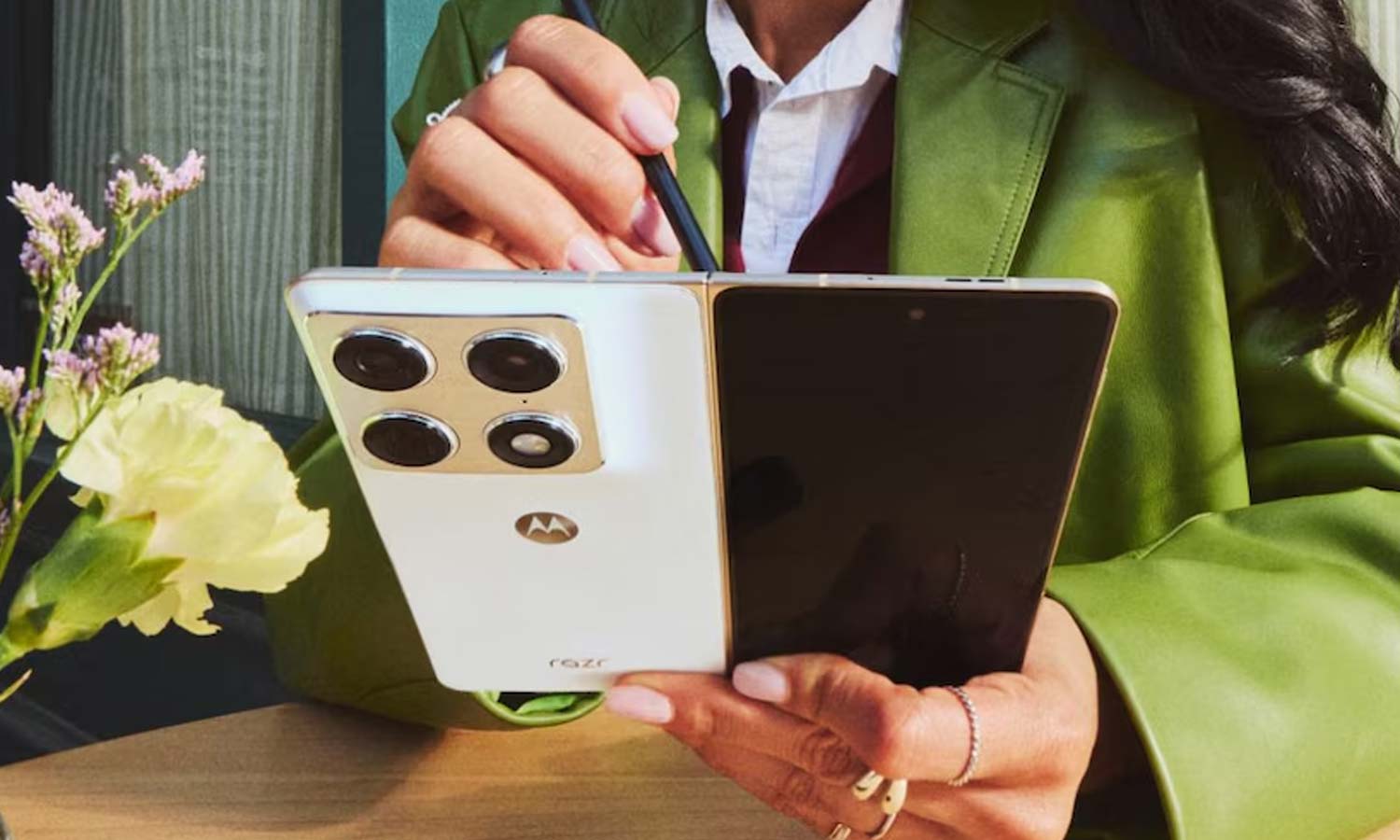 மோட்டோரோலா ரேசர் ஃபோல்டு மாடலில் 8.1 இன்ச் உள்புற ஸ்கிரீன் மற்றும் 6.6 இன்ச் கவர் டிஸ்ப்ளே கொண்டுள்ளது. இது மோட்டோ பென் அல்ட்ரா ஸ்டைலஸ் சப்போர்ட் கொண்டிருக்கிறது. இத்துடன் AI அம்சங்களும் உள்ளன.